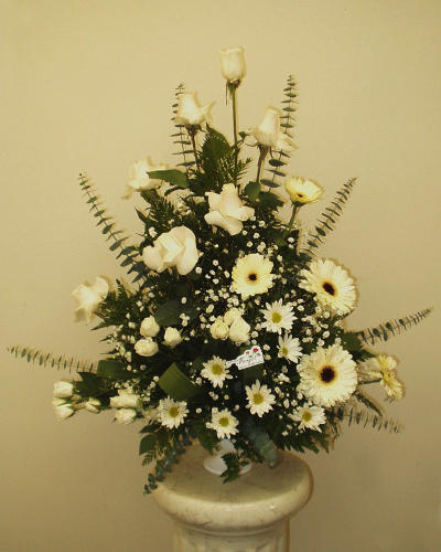 Expresar cariño en ciertos periodos de la vida con un elegante y sobrio arreglo floral de gerberas, rosas, mables y mini rosas.