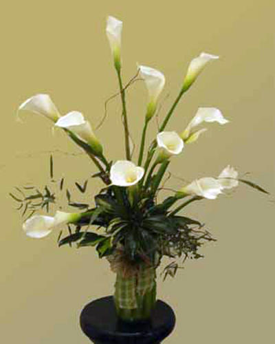 Elegante y fino florero de calas, especial para manifestar apoyo en tiempos difíciles.
