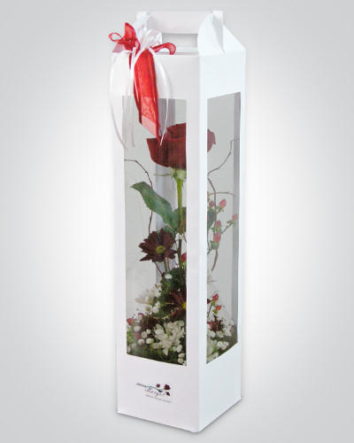 Sorprenda a esa persona especial con una elegante caja vertical con una rosa.